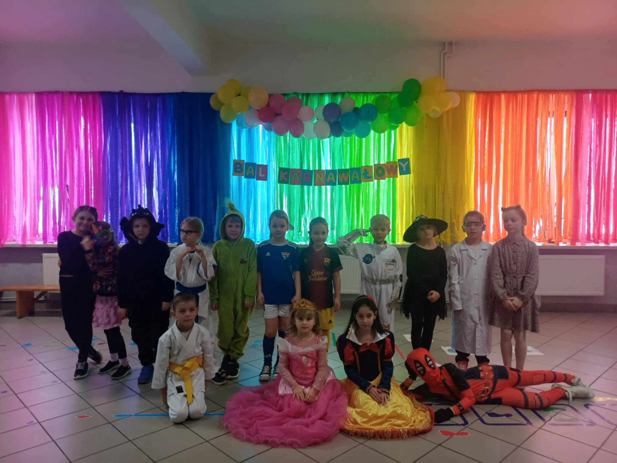 Uczniowie bawili się znakomicie, a parkiet ani na chwilę nie był pusty. Zabawę poprowadziła pani animatorka Aleksandra, która przygotowała liczne gry, tańce i konkursy, dbając o świetną atmosferę przez cały czas trwania balu. Na zakończenie odbył się wybór króla i królowej balu, a całość zwieńczyło radosne konfetti. To był wyjątkowy dzień pełen pozytywnej energii i niezapomnianych wrażeń.