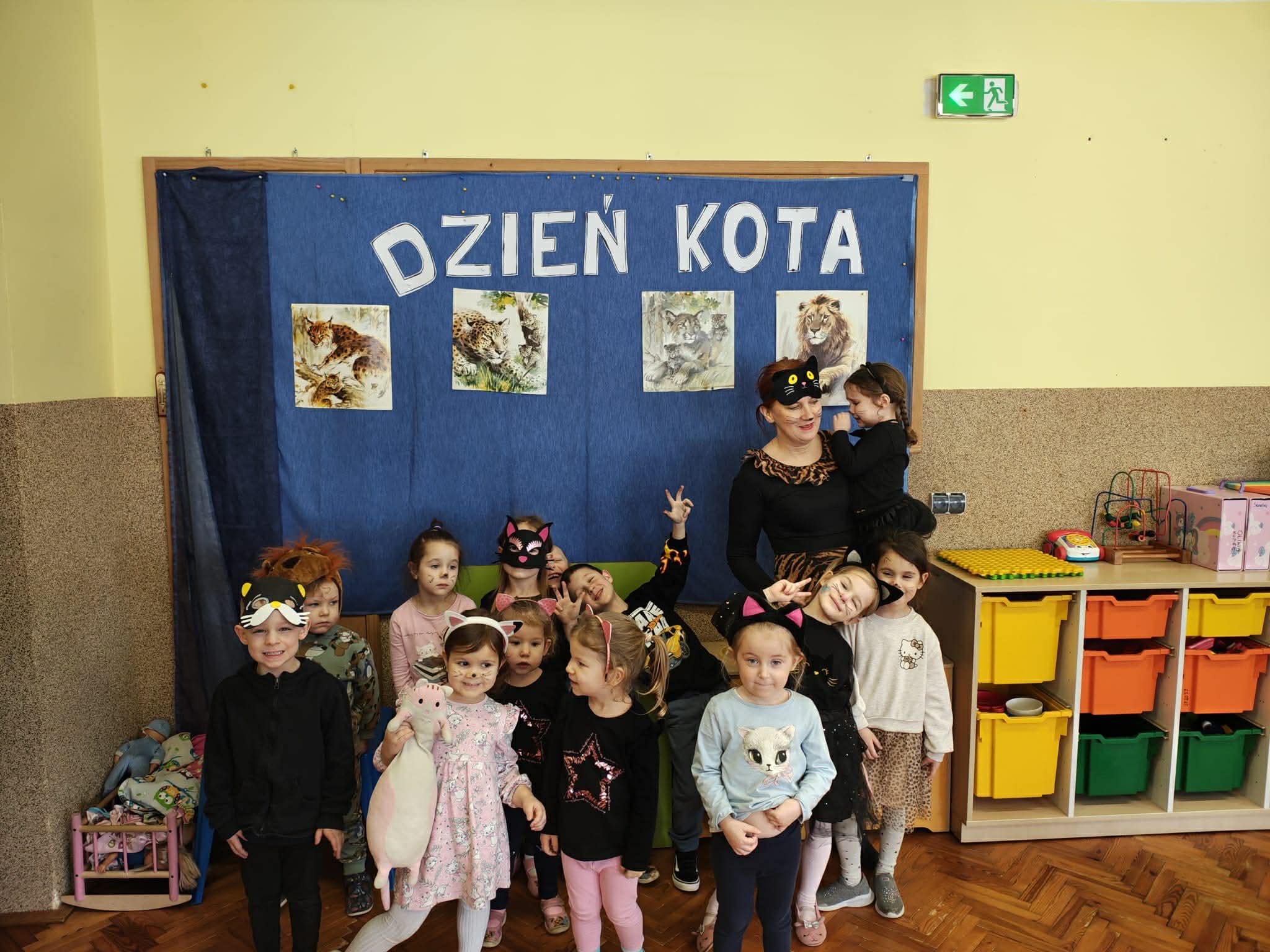 Dzień Kota, radosne święto uwrażliwiające dzieci na los zwierząt. Przedszkolaki przebrane za koty brały udział w „kocich zabawach”, poznawały kocie zwyczaje i wykonywały piękne prace plastyczne.