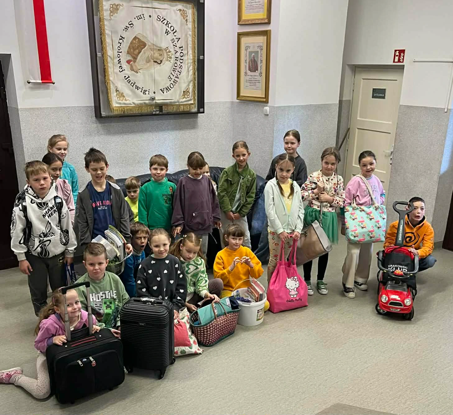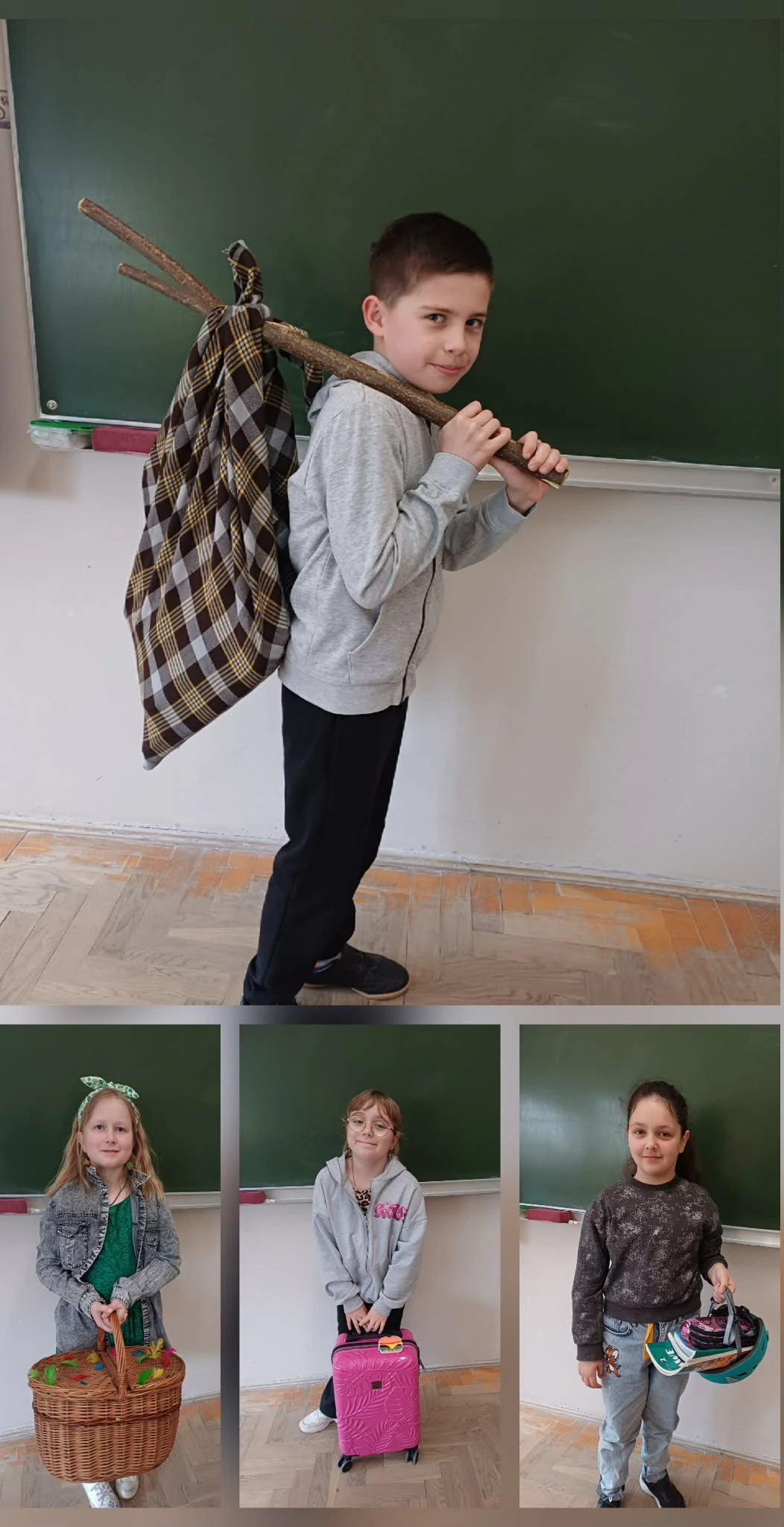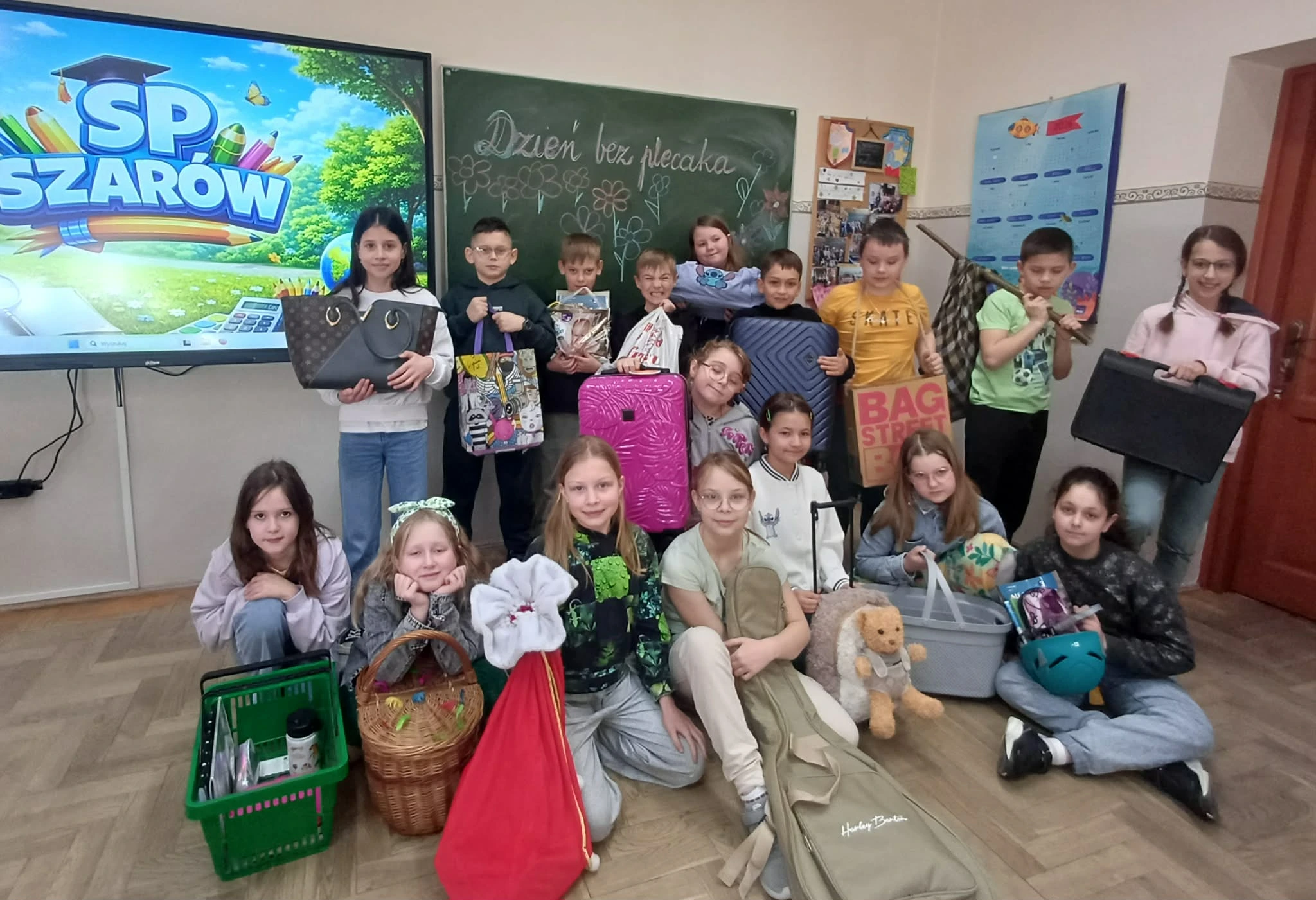Dzień bez plecaka Kolejnego dnia uczniowie wykazali się ogromną kreatywnością – zamiast plecaków pojawiły się koszyki, walizki, garnki, wózki ..