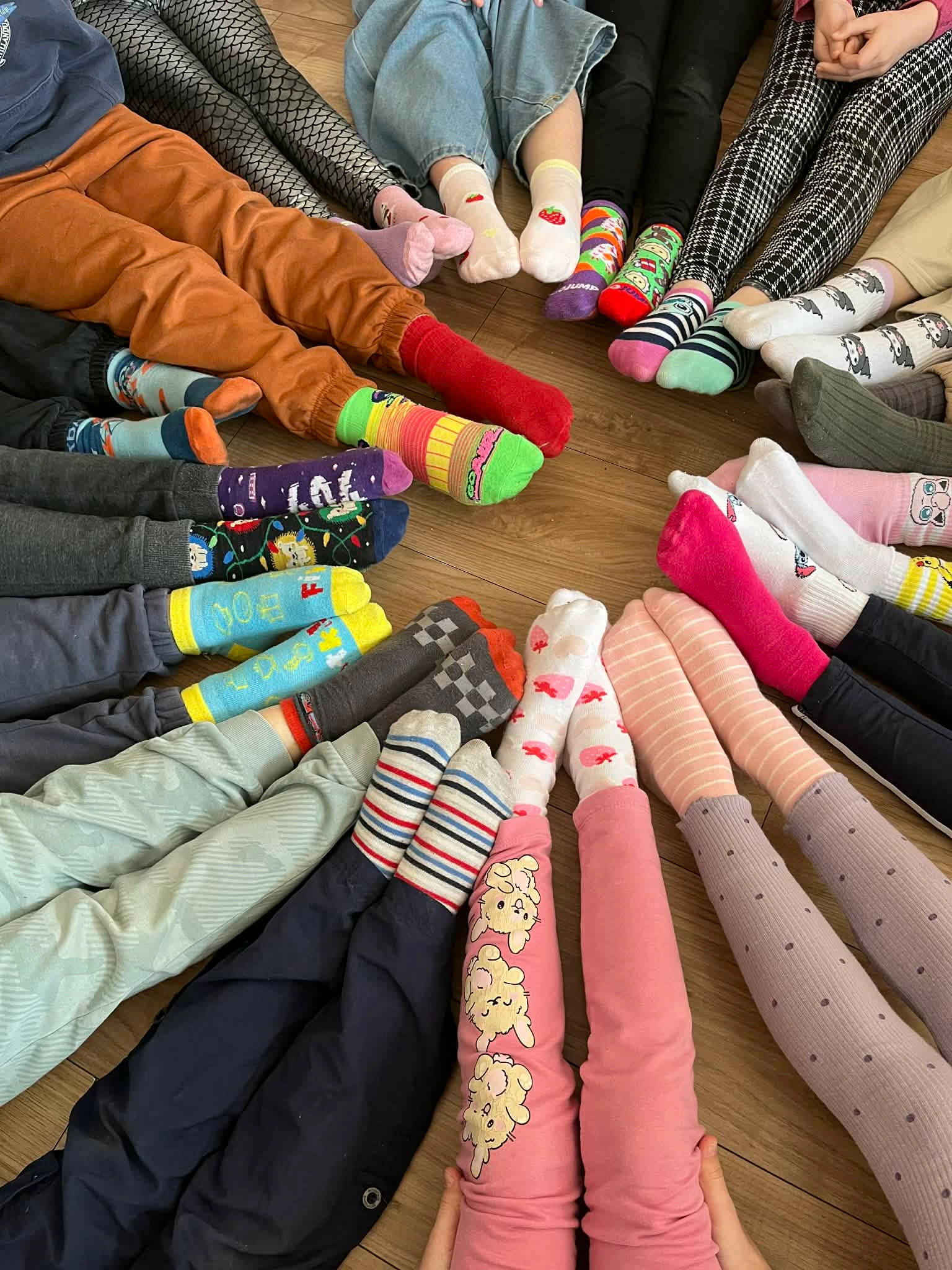 Dzień Kolorowej Skarpetki Pierwszego dnia uczniowie założyli wesołe, nie do pary skarpetki, pokazując, że każdy jest wyjątkowy. To piękne przypomnienie, że przyjaciele nie liczą chromosomów, a różnorodność czyni nas wyjątkowymi. Było bardzo kolorowo i radośnie!