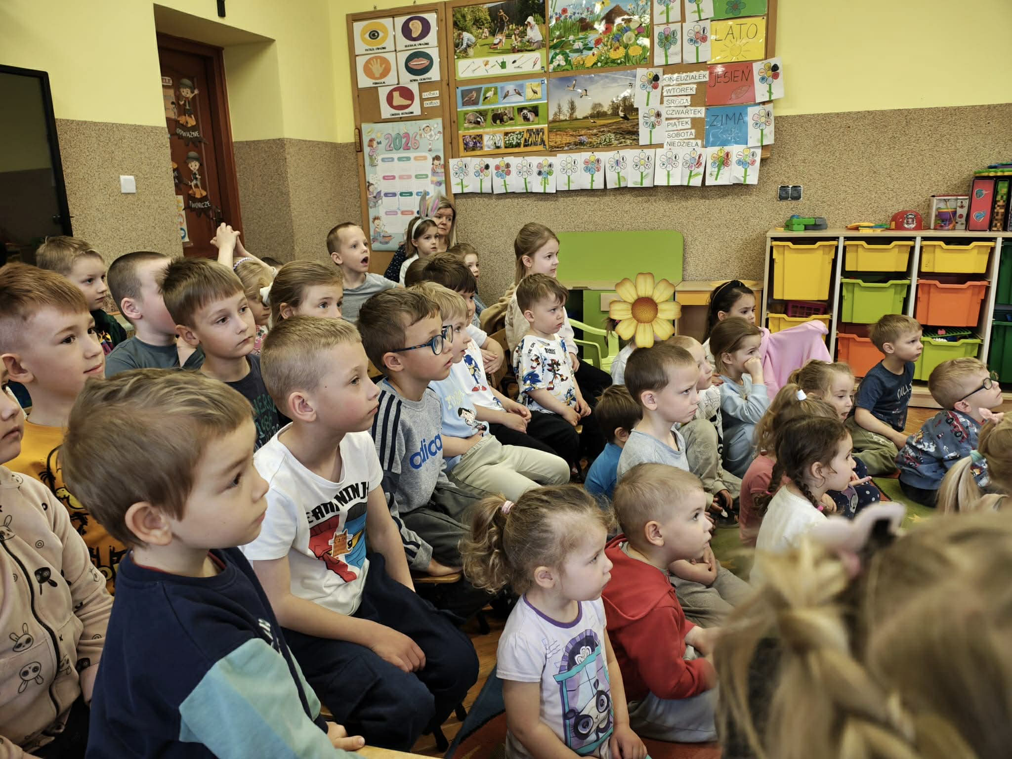 24 marca przedszkole gościło Teatr Eden z przedstawieniem pt. „Wyjątkowy gość”. Spektakl opowiadał o niezwykłym spotkaniu, angażując przedszkolaków w losy bohaterów oraz pobudzając ich emocje. Dzieci z dużym zainteresowaniem śledziły przebieg wydarzeń, reagując żywiołowo śmiechem, zaciekawieniem i skupieniem. W ramach obchodów Dnia Teatru było to wyjątkowe i wartościowe spotkanie ze sztuką, które dostarczyło dzieciom wielu pozytywnych wrażeń oraz wzbogaciło ich doświadczenia kulturalne.