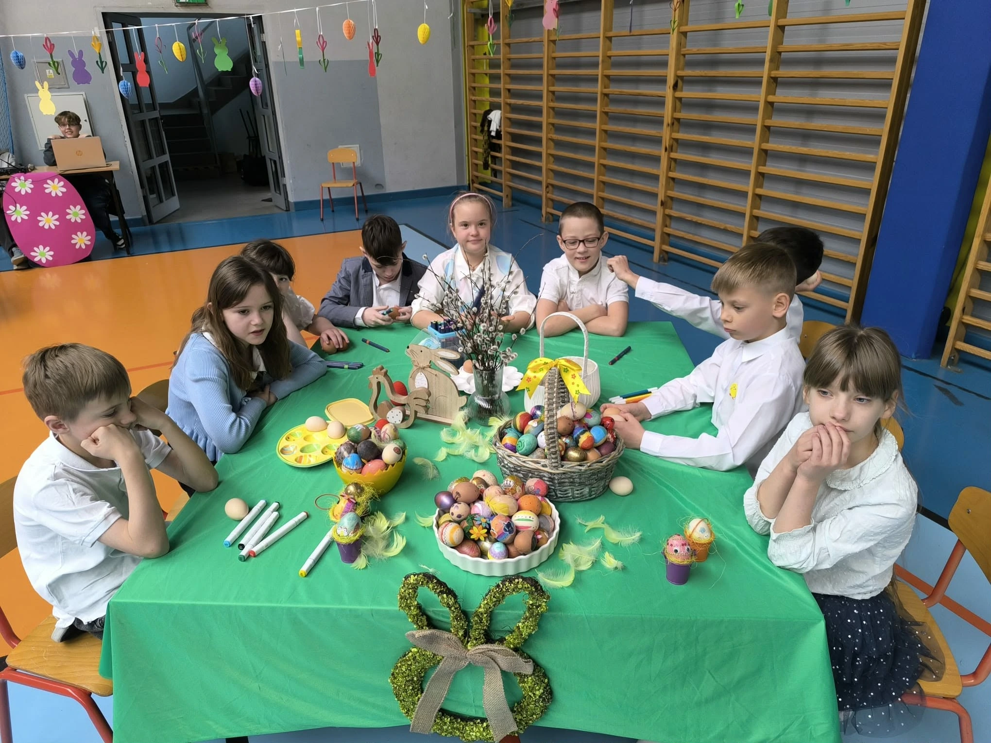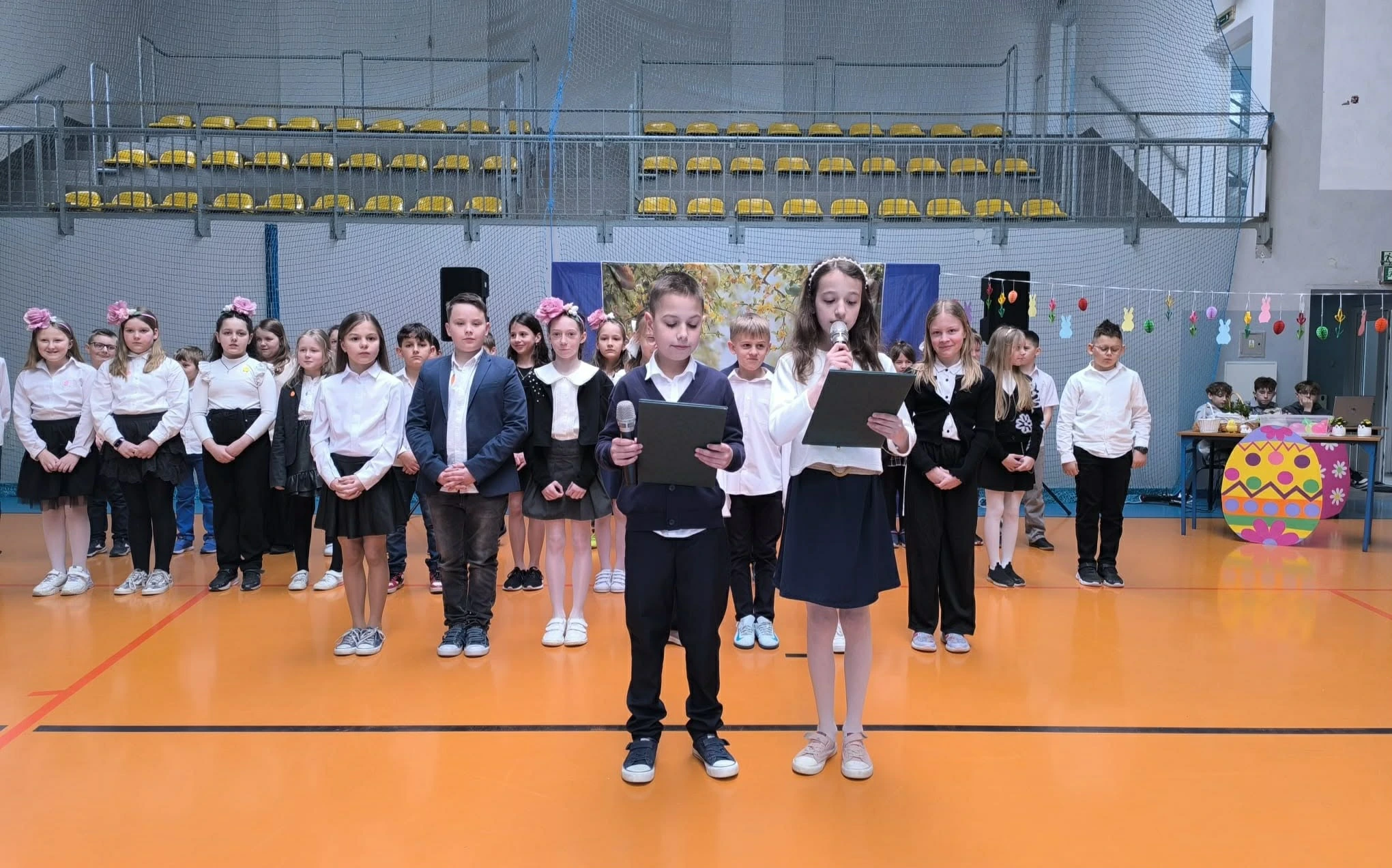 Za nami uroczysty apel wielkanocny, który przygotowali uczniowie klas trzecich. Usłyszeliśmy nastrojowe wiersze o wielkanocnych tradycjach oraz radosne piosenki, które wprawiły wszystkich w świąteczny nastrój. Oczywiście nie obyło się bez mini śmigusa dyngusa. Na zakończenie uroczystości głos zabrał Pan Dyrektor Marcin Śmigla, który podziękował młodym artystom, a całej społeczności szkolnej złożył serdeczne życzenia: spokoju, radości przy wielkanocnym stole oraz zasłużonego odpoczynku.